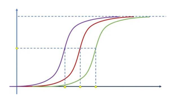 Represented by , the bias can increase or decrease the input in the activation function, which can displace the whole function, based on the bias value. The below image reflects the displacement of a Sigmoid Function for different bias values.